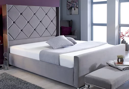 Arabella Bed – excellent craftsmanship, a supportive base. A choice of soft/crushed velvet fabric upholstery – it can only be Silent Zone Arabella Bed. This contemporary bed is a statement design, luxurious and versatile. The cushioned headboard adds a touch of extra comfort along with the padded Side rails and footboard adding to the luxurious feel and look.