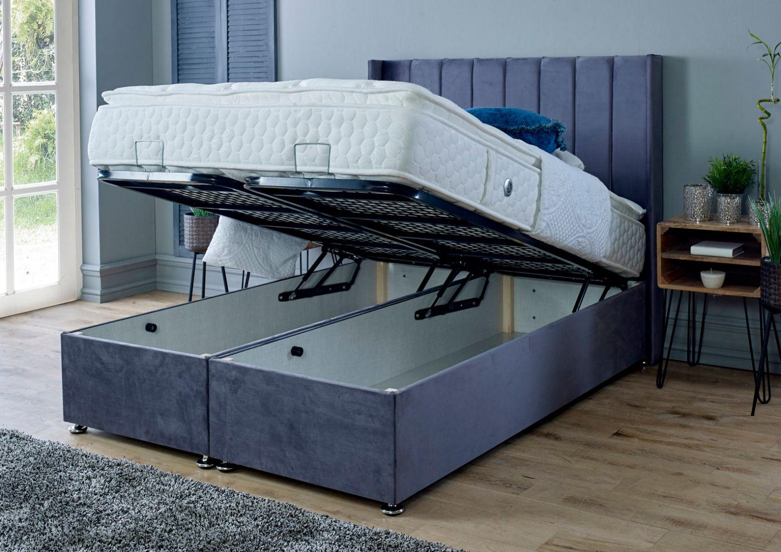 If space is at a premium, this fantastic extra deep end lifting ottoman provides up to 4x more under bed storage than a standard divan base with drawers. It is pre-assembled with gas lift pistons which are positioned on each side of the base.